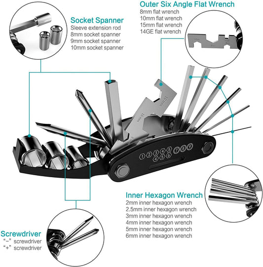 Bike Repair Kit with 120 PSI Pump & Pressure Gauge